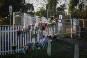 Floral tributes were laid at a railway crossing a few minutes’ walk from the station which connects the village to the banks of the river Trent.