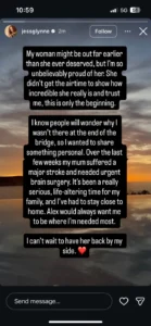 ‘Over the last few weeks my mum suffered a major stroke and needed urgent brain surgery,’ Jess wrote.