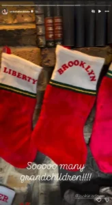 Pictured among the embroidered stockings is one for Brooklyn, proving that the family are still thinking of their eldest son, even during this fraught time.