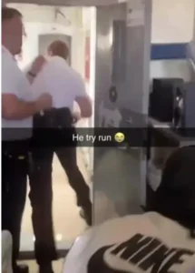 The clip showed the uniformed guard leaving the cell, with the caption overlaid: ‘He try run’, the Sun reported.