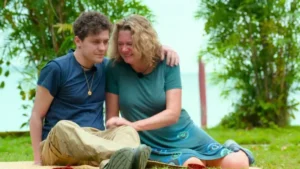 Swimming in the water, Jackie poignantly reflected: ‘When I’m in nature, I feel like I’m close to heaven or something. I think through losses I have, I feel closer to them when I’m in those moments of serenity and beauty.’