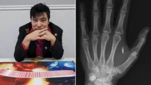 A Missouri magician has learnt a valuable lesson after he implanted a computer chip into his hand to do some fun magic tricks – but then forgot the password. Now, he can’t use it. Zi Teng Wang, who is also a molecular biologist, shared his predicament on Facebook, along with an X-ray of his hand showing the outline of the microchip which is embedded in the meat between his thumb and index finger. (Picture: Zi Teng Wang)