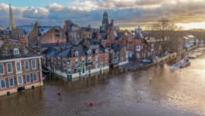 ‘There are also possible significant river flooding impacts in parts of the north of England on Sunday and Monday, with minor flooding impacts possible more widely across northern England over the weekend.’