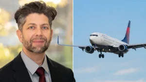 The professor of law said he struggled to breathe and threw up onboard a Delta Airlines Boeing 737 from Atlanta to Los Angeles last year.