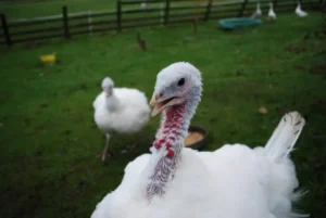 Because I’d just ushered two white-feathered turkeys across the threshold and it seemed no one knew quite how to react.
