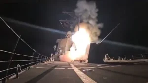 A video uploaded to X by the US Department of War yesterday showed missiles being launched from a warship.