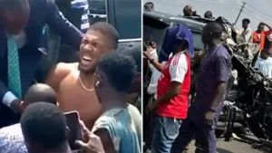 Joshua was seen wincing and in clear discomfort as he was helped out of the wrecked car, and has since been transferred to one of Nigeria’s best hospitals, the Duchess International Hospital in Lagos.