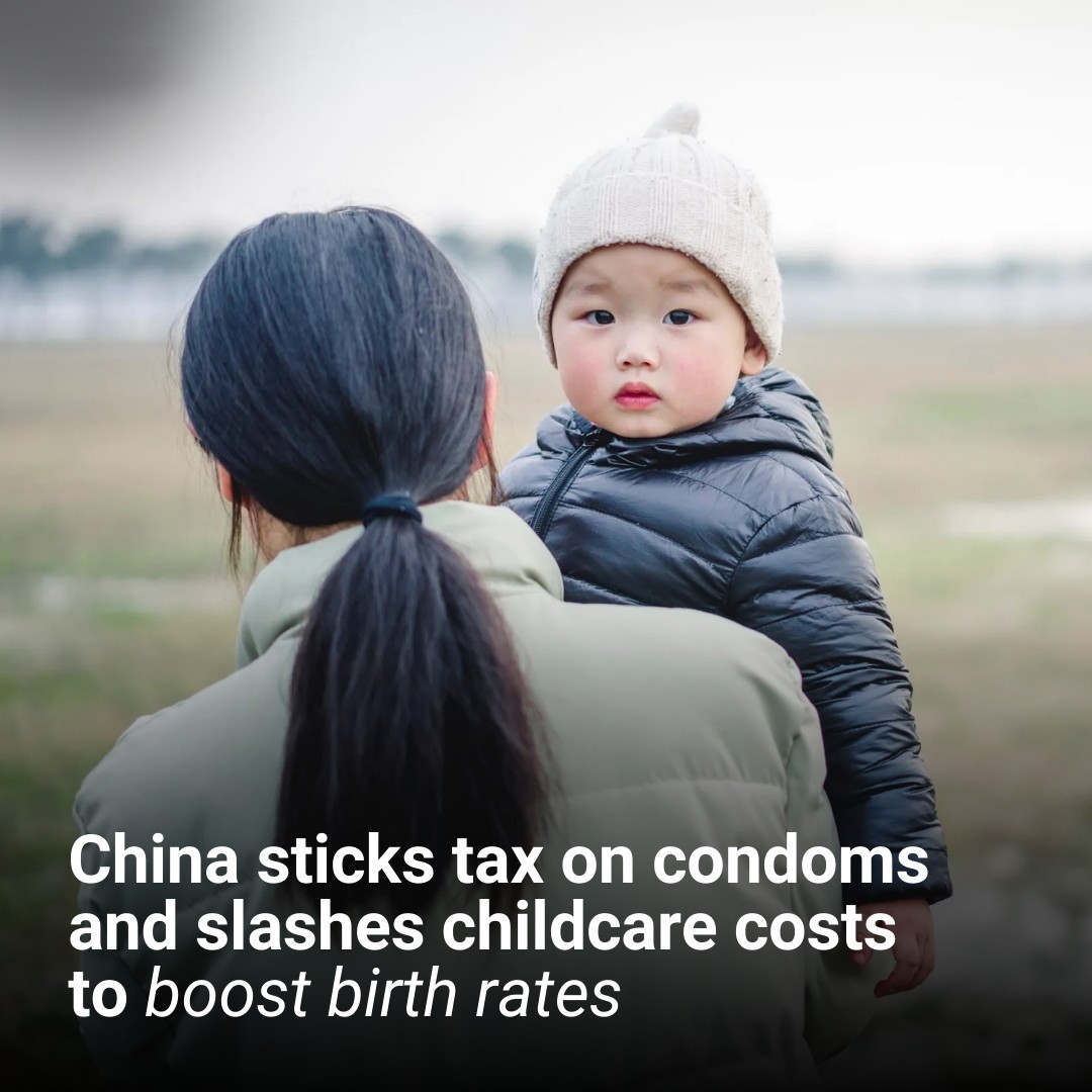 A 13% tax on contraceptives was introduced by China today in an effort to boost the country’s birth rate.