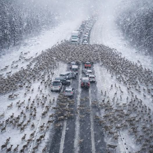 Soon, hundreds of deer crossed the road. Cars halted completely. People stepped out, pointing and recording. Social media buzzed with #ChristmasMiracle and #DeerCrossing.