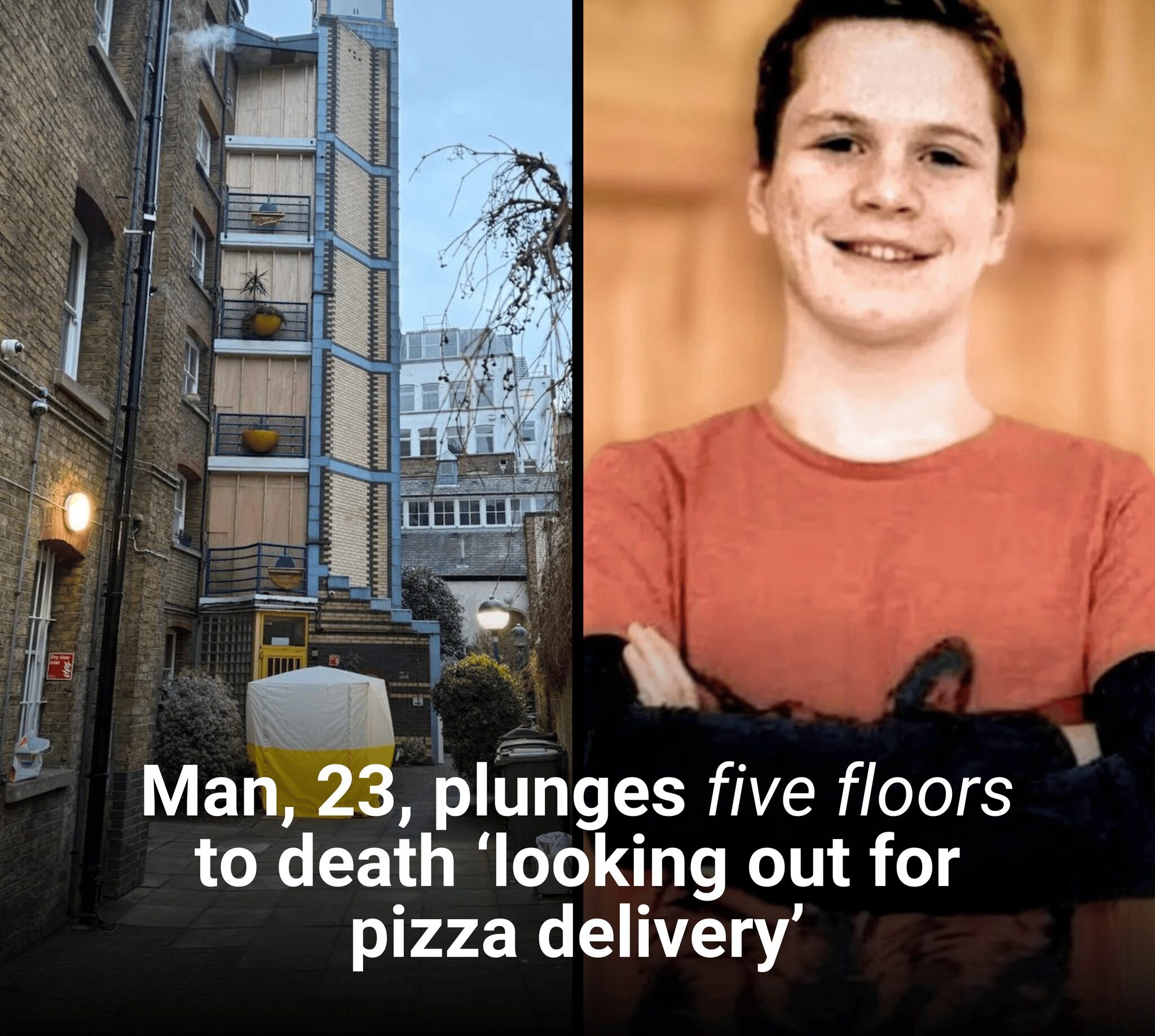 Joshua Robbins, 23, fell from the communal landing outside his London flat as he went to check if a pizza delivery driver had arrived, his family said.