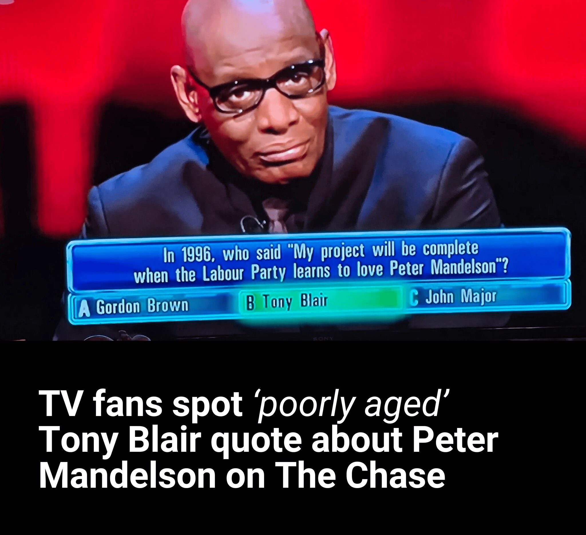 TV viewers have been left cringing after a ‘poorly aged’ question about Peter Mandelson was spotted on an old episode of The Chase.