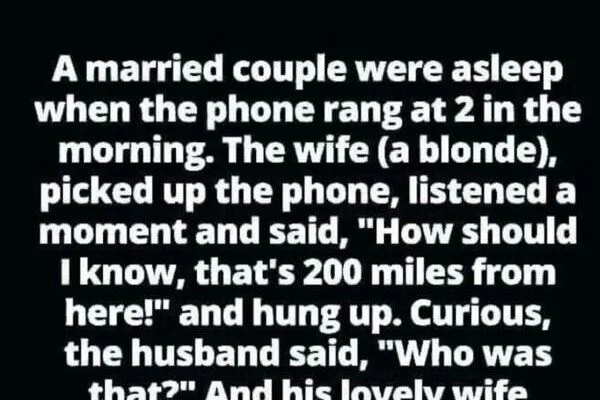 The wife (a blonde) picked up the phone, listened for a moment, and said,“How should I know?