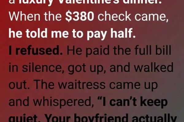 As I prepared to leave, the waitress approached and handed me a folded note from him. In it, he explained that the evening wasn’t just about dinner—it was about seeing how we handled discomfort and unexpected moments together. He wanted to understand whether we could communicate honestly without becoming defensive or hostile, emphasizing that relationships are built not only in perfect moments, but in disagreements and awkward pauses. Standing outside in the cool February air, I realized the night had tested not our finances, but our ability to navigate tension together—and perhaps that lesson mattered more than the bill itself.
