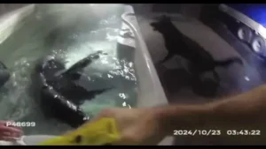 This is the moment two thieves found themselves quite literally in hot water after they were found hiding in a hot tub.
